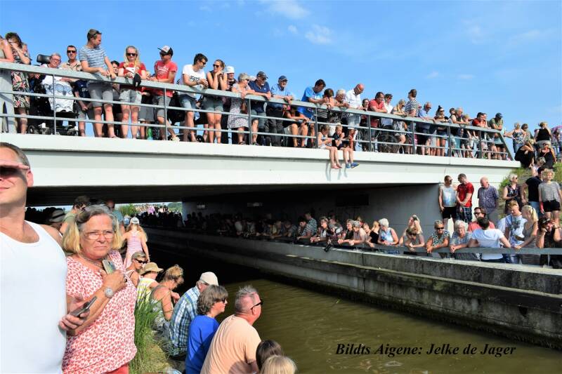 Zoals overal in Fryslân, stond op zon-dagmiddag deze brug bij Sint Anna-parochie ook vol juichende mensen.