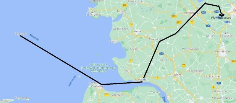 Het is prachtig weer maar geen wind zodat we alles motoren. Eerst naar de pomp geweest in Cuxhaven. De vlonder is bedoeld voor 2 boten maar er past maar 1. We moeten wel precies op het eind liggen!
