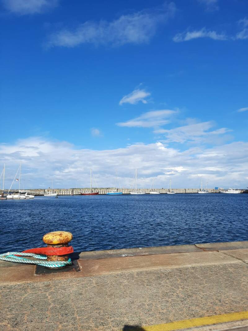 Er liggen ook niet zoveel jachten in de haven. Nog maar 8 aan de lange kade. Verderop nog een paar.