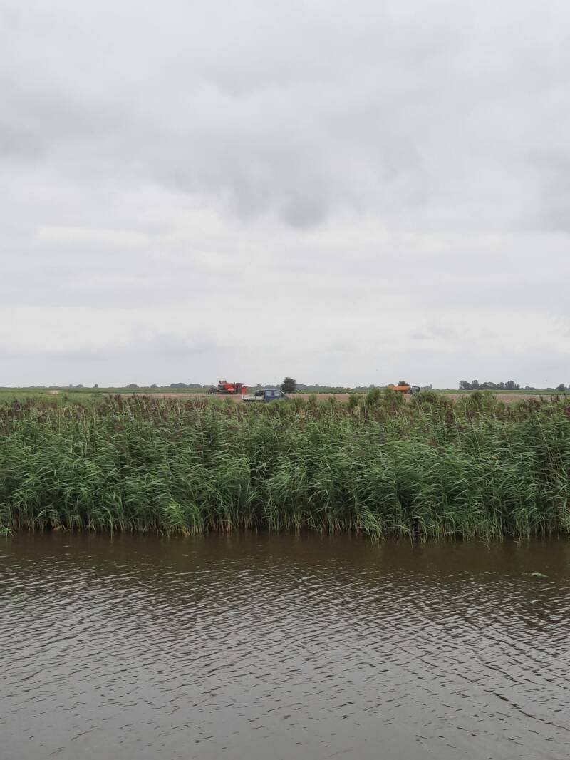 Aan de kant zijn ze druk bezig met aardappelen rooien.