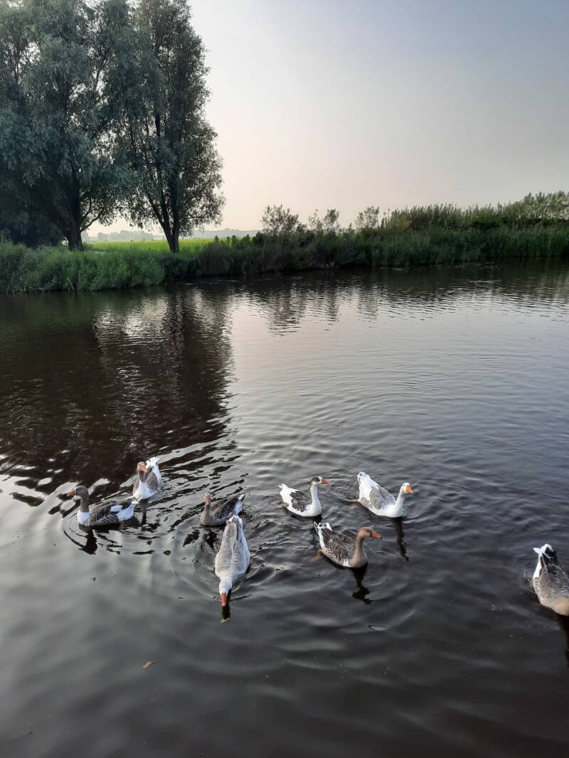 We voeren de ganzen wat brood.