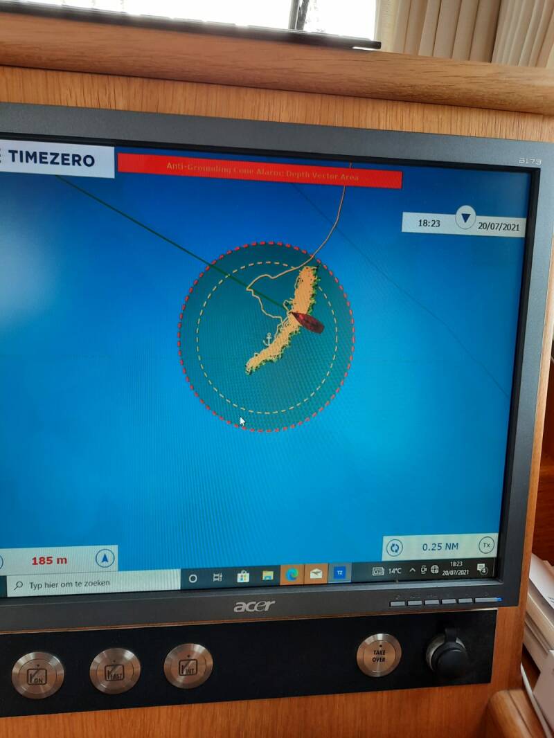 Er zijn meer ankeraars maar er is veel zeegras en wij gaan er met anker vandoor. Een stuk verderop is meer ruimte om meer ketting uit te leggen en daar liggen we goed. Elk een keer eruit om te kijken maar we liggen waar we liggen, nu wel met meer deining.