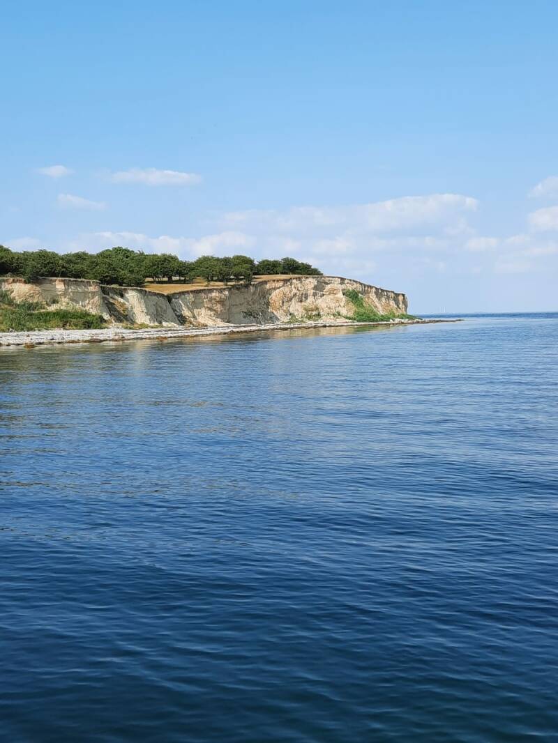 De Grote Beltbrug waar we gister onderdoor zijn gegaan(65m.) zien we van ver. We komen een paar zeeschepen tegen maar het is niet druk. Onderweg paar bruinvissen gezien. We ankeren bij Romsø, vlak bij de oever met zwaluwen. Daar hebben we gezwom-men en gevist maar niets gevangen. Buiten nasi gegeten en van het uitzicht genoten!