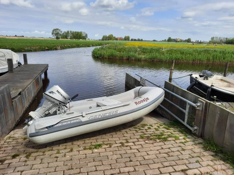 Vandaag met plakletters de naam "Roosje"op de bijboot geplakt. Het is prima gelukt.
