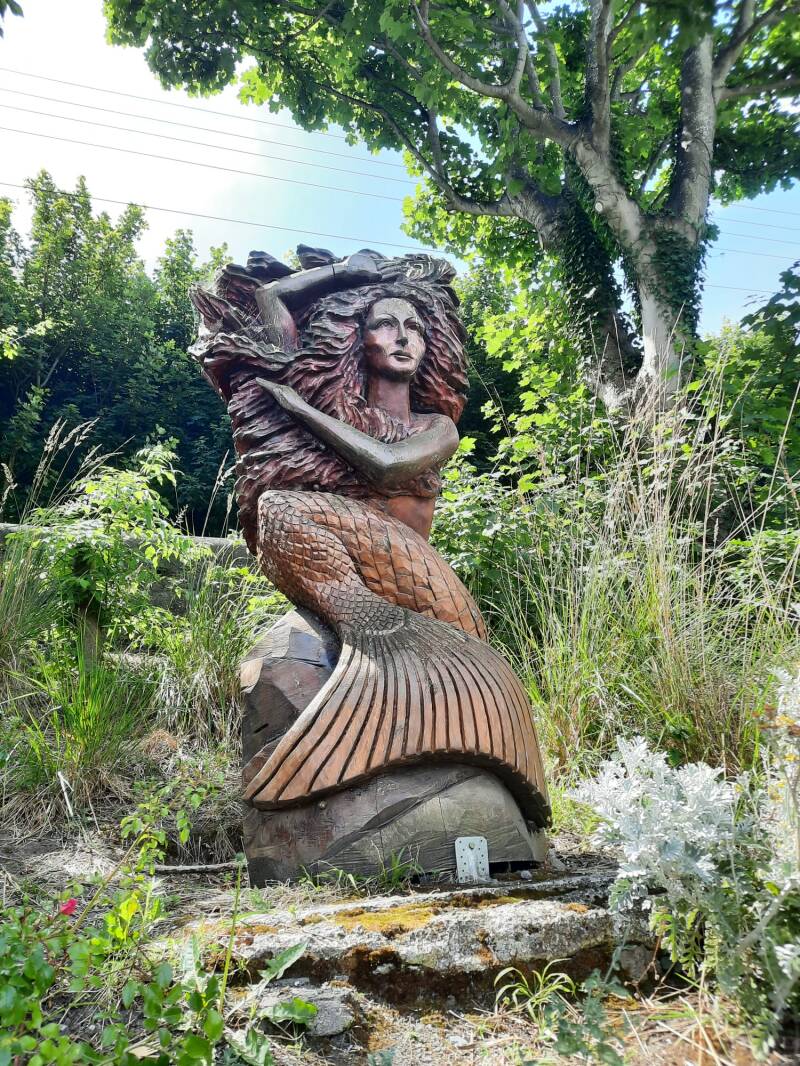 We lopen langs een klein wandelpaadje omhoog en hebben een prachtig uitzicht over de Ierse zee, de haven en het eilandje Eye. We zien bijna geen boten op het water.