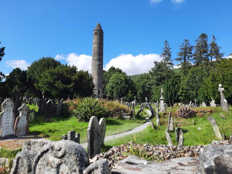 Daarna ging de reis verder naar Glendalough. Daar waren prachtige meren met oude ruïnes. Het was best druk met toeristen, zeker op maandag.