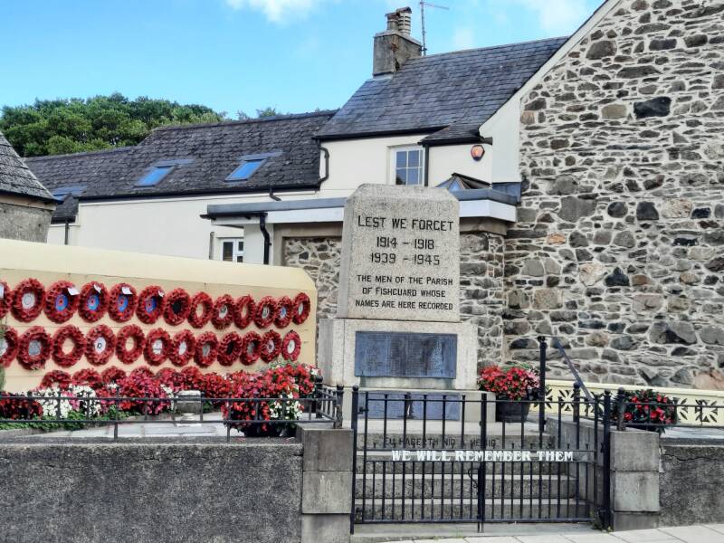 Dit monument herdenkt de inwoners van Fishguard die zijn omgekomen of vermist in de Eerste (62 namen) en Tweede Wereldoorlog (31 namen).