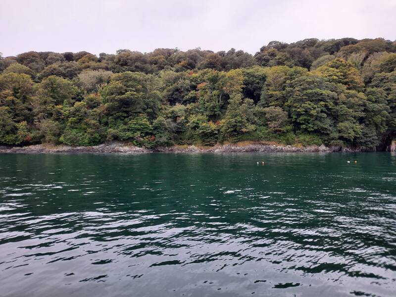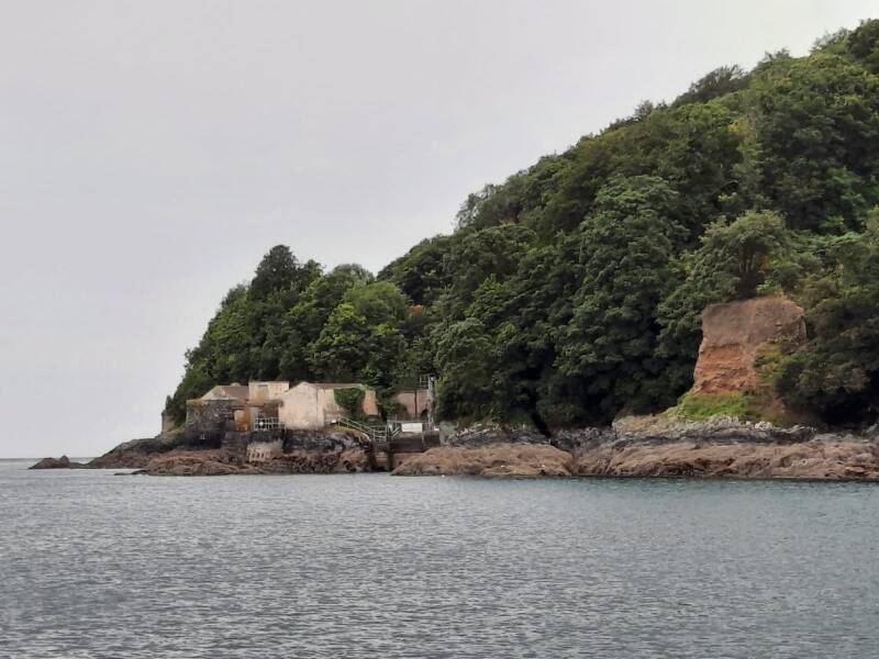 Het is bijna laag tij, wanneer wij ankeren we in de baai links van Plymouth. Er liggen wel meer boten waarvan er verschillende ook al weer vertrekken. We liggen vrij dicht bij de rotsen maar wel op minimaal 4 meter. Het is nu vloed en wel 9 meter diep.
