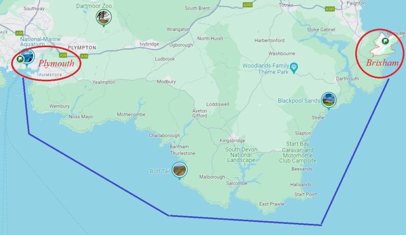 De dag begon grijs en nat. Omdat de voorspellingen voor vanavond ook stevige wind en regen laten zien zijn we richting Brixham vertrokken. Geen zeilen omhoog en we zitten veilig en warm binnen. Het nadeel van binnen: beetje zeeziek! Even boven het emmertje!