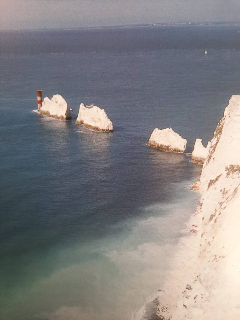 In het Kanaal boek staat deze prachtige foto. Eerst zie je alleen een klein vuurtorentje bij de krijtrotsen. Als je dichterbij komt zie je pas dat er verschillende rotsen achter de vuurtoren staan.