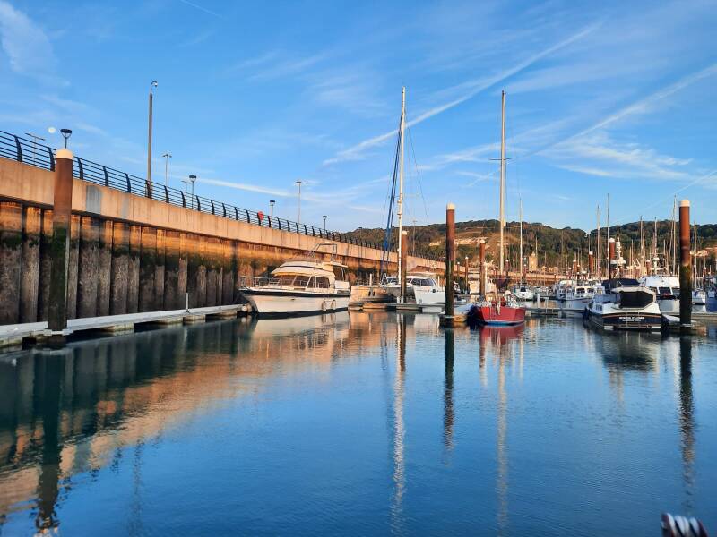 Vandaag begon heel mooi met de zon op de krijtrotsen. Rond 7 uur hebben we het zeil en de kotterfok omhoog. We verlaten Dover en daarmee Engeland en beginnen aan de zeiltocht naar de overkant. De sterke stroom zet ons wel een stuk naar onderen zodat we lager bij Calais uitkomen.