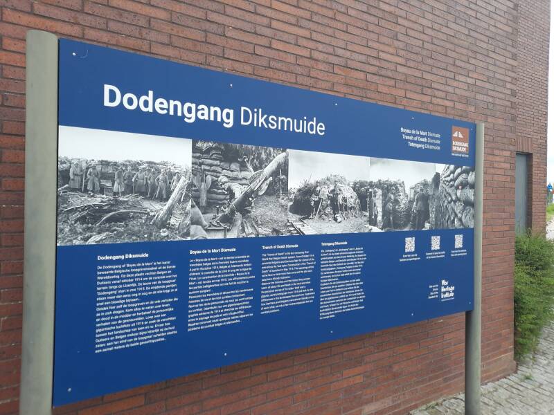 De stad is bekend vanwege de Eerste Wereldoorlog, waarbij ze het hard te verduren had aan het IJzerfront.nderweg kwamen we voorbij het museum "Dodengang". Dit is het enige bewaarde Belgische loopgravenstelsel uit de Eerste Wereldoorlog. We zijn we niet door gelopen maar het ziet er wel heel indrukwekkend uit. Het is een heel stuk langs de IJzer.