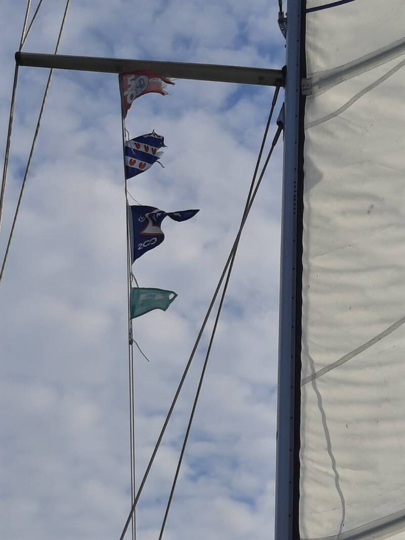 Onze vlaggetjes van toerzeilers, Fryslân en Marrekrite zijn behoorlijk gesleten! Alleen de vlag van de KNRM is van betere kwaliteit!