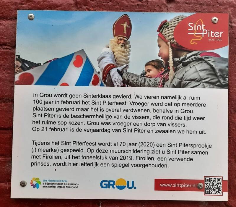 Er zijn veel wandelaars en fietsers onderweg. Iemand maakt een nieuw bordje voor een wandelroute. Eerst ondersteboven maar na een kritische blik toch maar even opnieuw opgehangen.