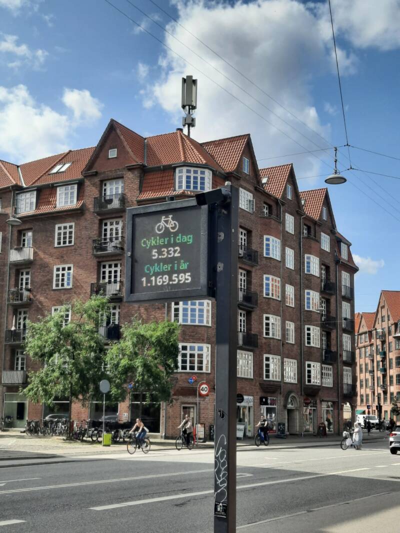 We zagen langs de weg een groot bord waarop fietsers werden geteld!