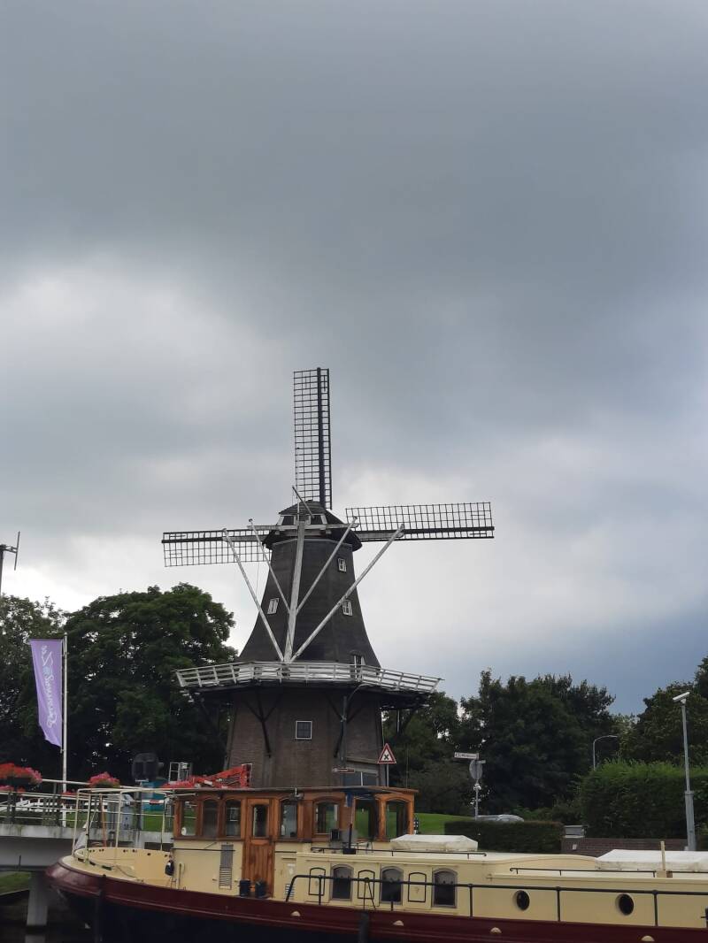 Nadat we de band hadden geplakt en boodschappen hadden gehaald gingen we om 11 uur door de stad varen.