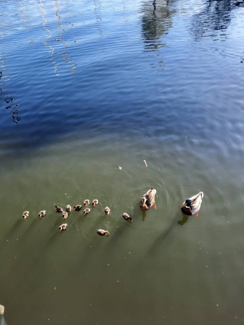 In Medemblik zwom een paar eenden met 13 piepkleine kuikens.